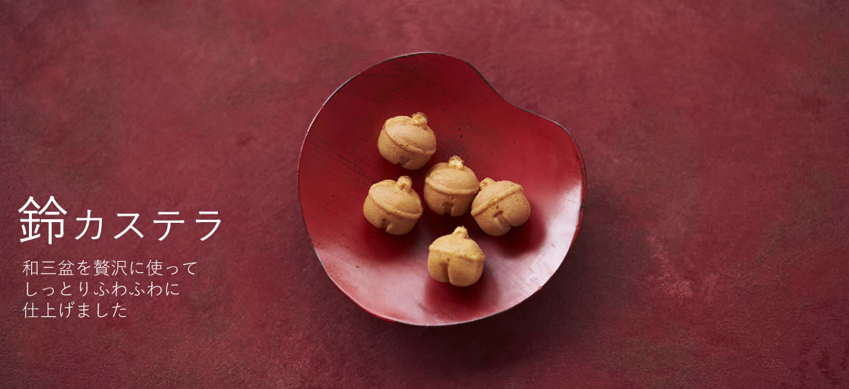普門庵名物の鈴カステラ。和三盆を贅沢に、しっとりした食感焼き上げました。